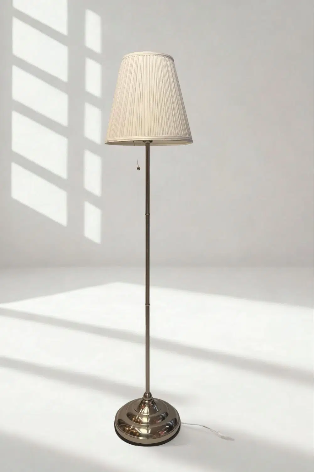 Zincirli anahtarıyla retro bir detay sunan bu lambader, özellikle okuma köşeleri, yatak odaları ve nostaljik dokunuşlu yaşam alanları için idealdir.