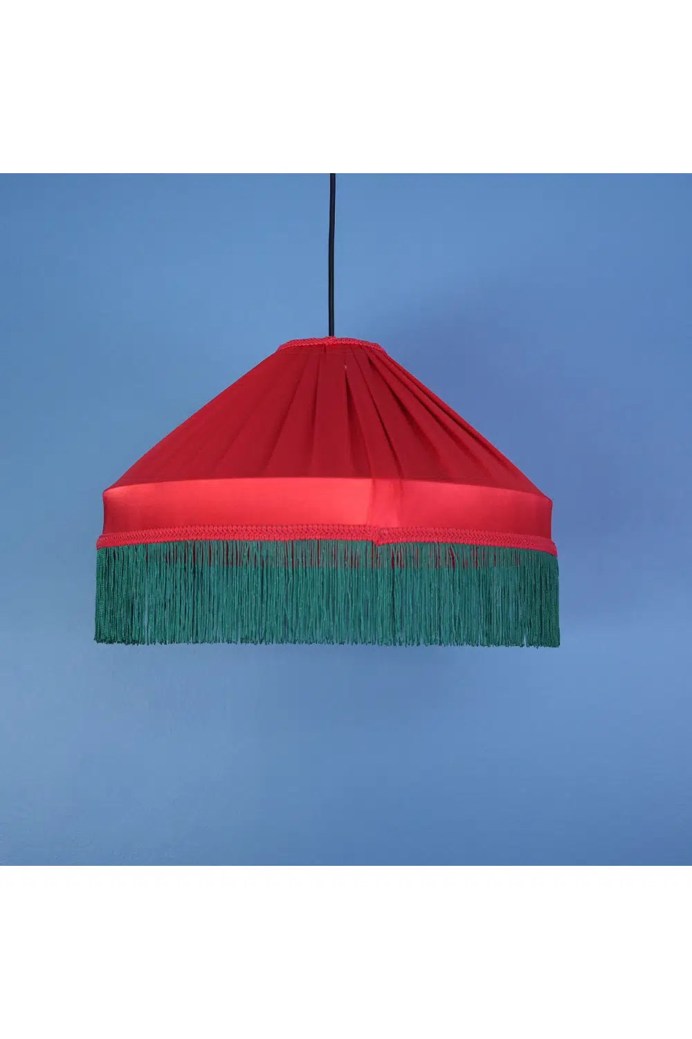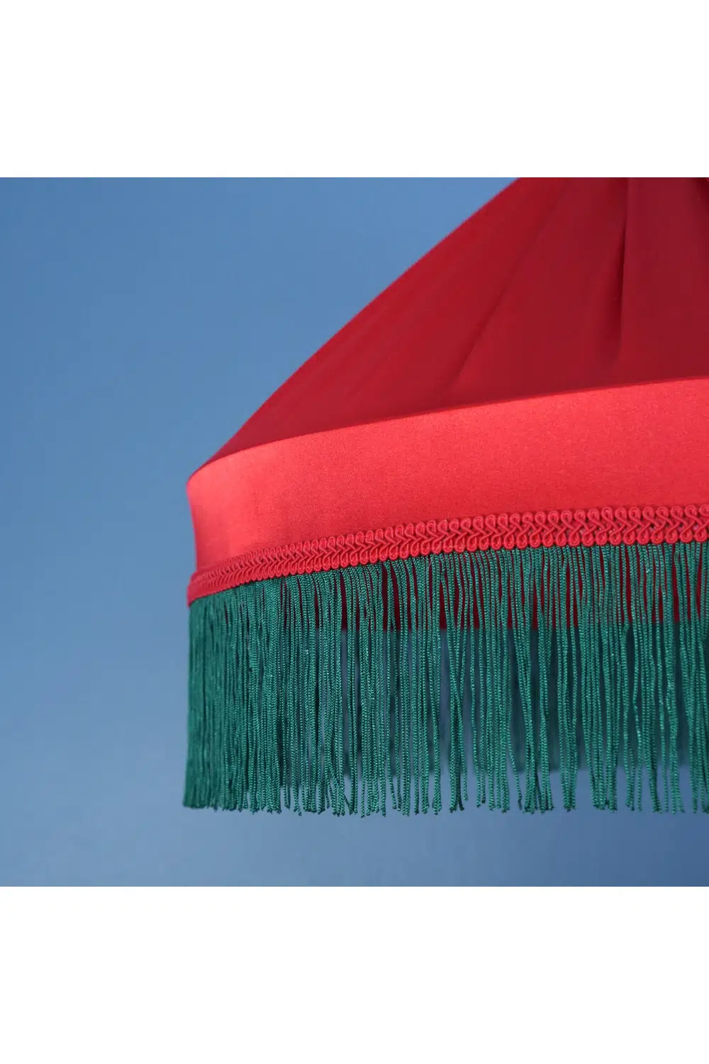 Kırmızı, ışığın enerjisini mekâna taşırken; yeşil püsküller bu enerjiyi dengeler ve tasarıma doğal, ritmik bir akış kazandırır. Zarif el işçiliği detayları, avizenin her hareketinde renklerin uyumlu dansını ortaya çıkarır.