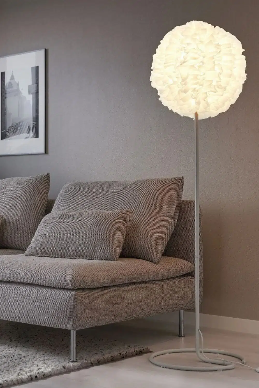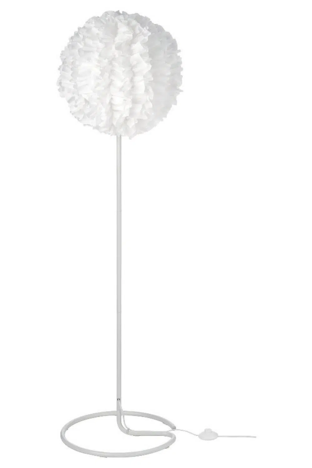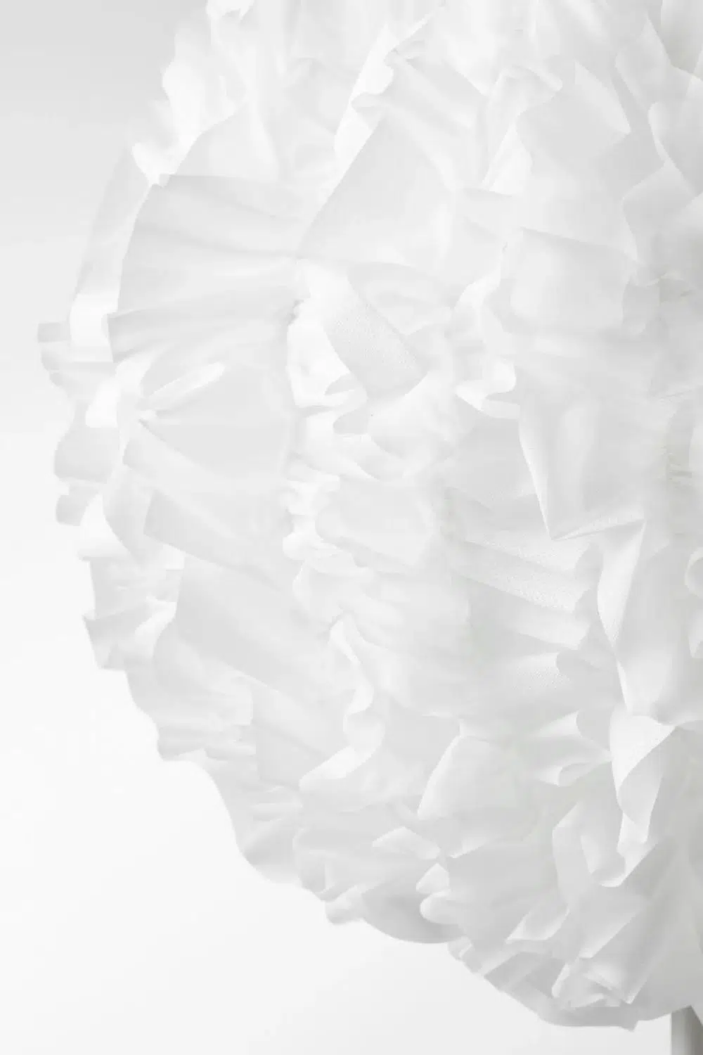 Tül benzeri yumuşak dokulu beyaz abajuru, ışığı filtreleyerek ortama huzurlu ve masalsı bir ambiyans kazandırır.