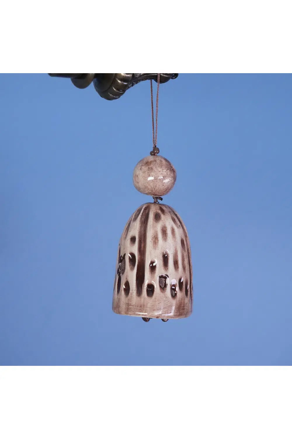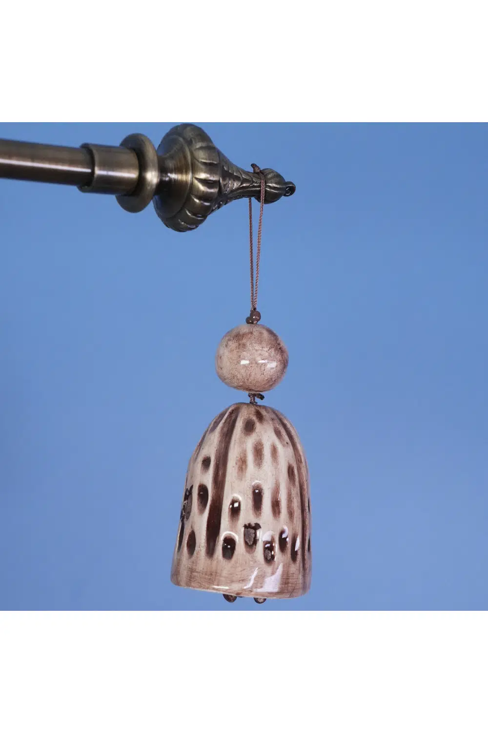 Toprağın sıcak tonlarıyla biçimlenen bu el yapımı çan, hem ışığı hem sesi yumuşak bir zarafetle yansıtır.