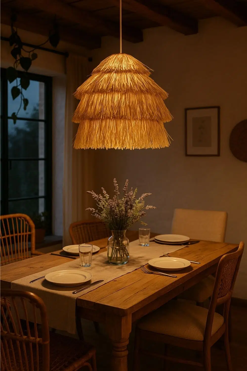 Hasırın sade dokusu ve sıcak tonu, yapaylıktan uzak bir atmosfer yaratır — sessiz ama kararlı bir varlık gibi.