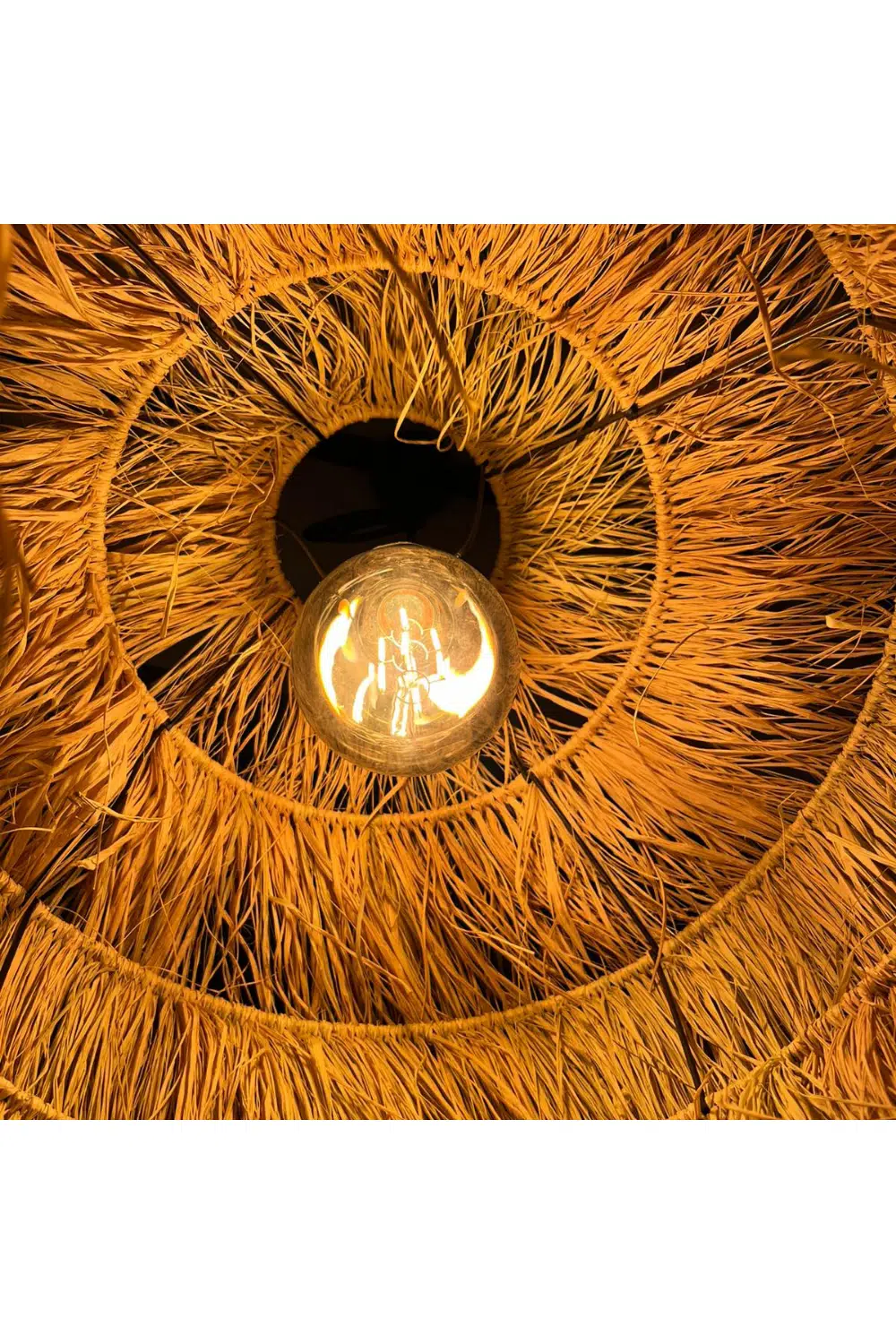 Püsküllü Hasır Sarkıt Avize, tamamen doğal liflerden üretilmiş üç katmanlı yapısıyla hem bohem hem de organik dekorasyonlara uyum sağlayan bir tavan aydınlatmasıdır.