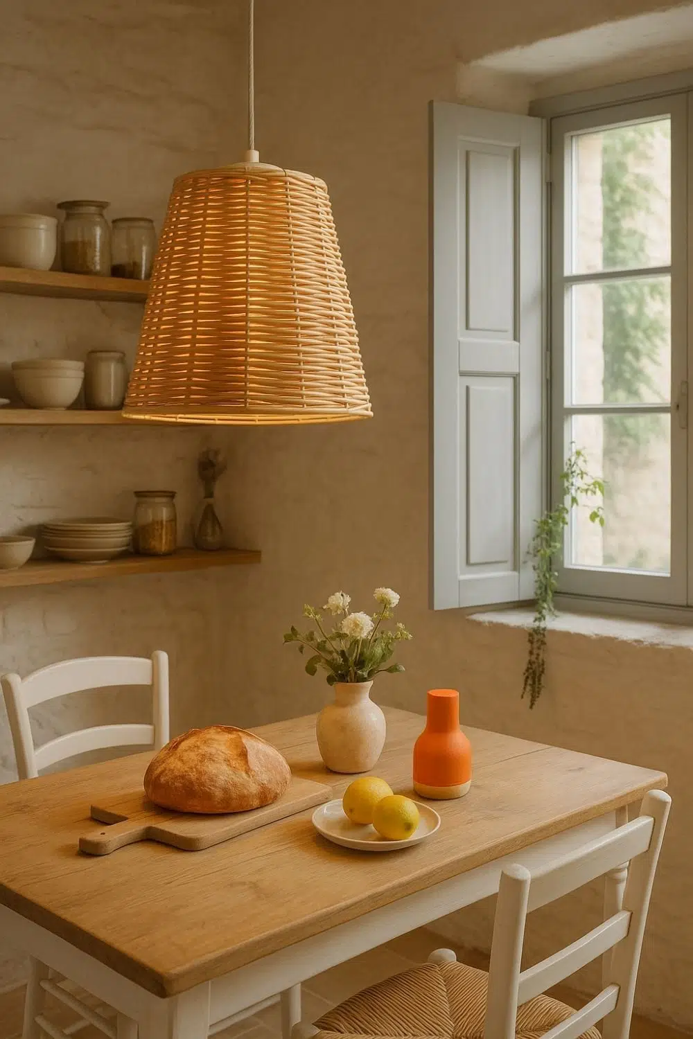 Hasır dokusundan süzülen yumuşak ışık, mekâna samimi bir hava kazandırırken doğallık arayan iç mekânlar için sıcak bir alternatif sunar.
