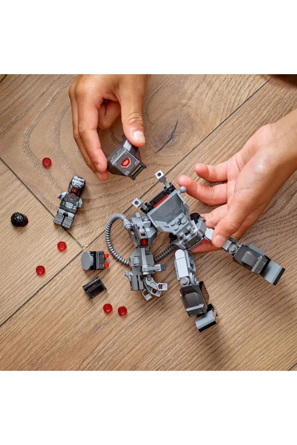 Çocuklar, War Machine minifigürünü robotun kokpitine koyar, sonra 3 atıcı ve bir kutu yedek mühimmatla savaşa gider.