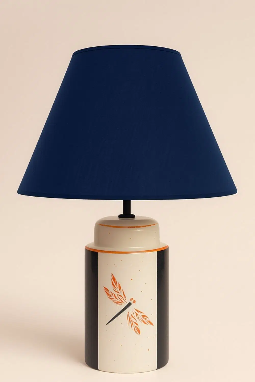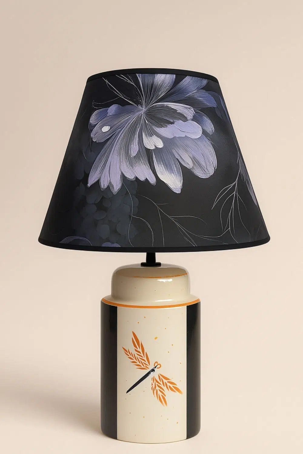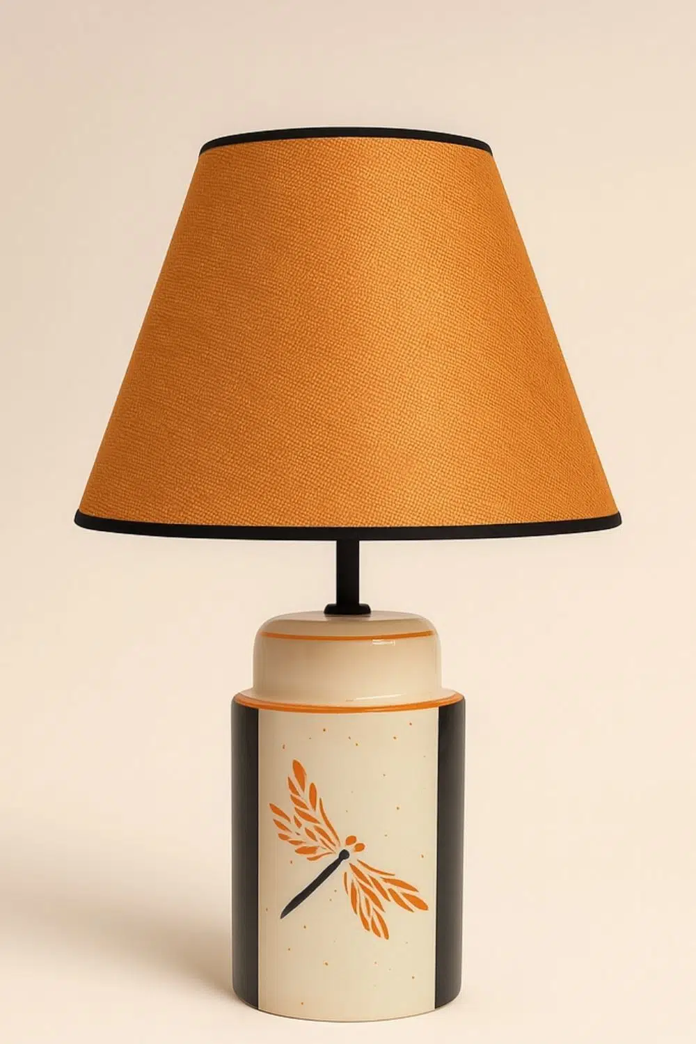 Libella Abajur, yusufçuk figüründen ilham alarak tasarlanmış, seramik gövdeli ve dikkat çekici bir masa lambasıdır. Gövdesinde yer alan turuncu kanatlı yusufçuk motifi, doğaya duyulan estetik bir hayranlığı yansıtırken; siyah kenar detayları modern bir kontrast oluşturur.