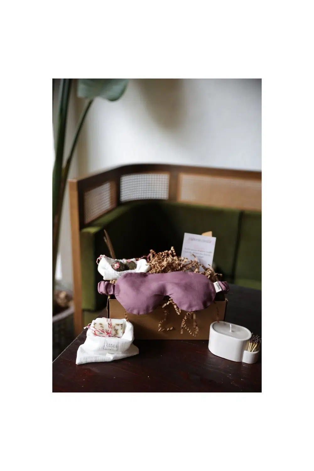 LUMA Touch Flaxseed Box; doğal keten tohumlu göz maskesi, el yapımı soya mum, 2 adet Blossom Tea ve özel meditasyon müzik listesiyle hazırlanan premium bir öz bakım ve denge ritüel kutusudur.