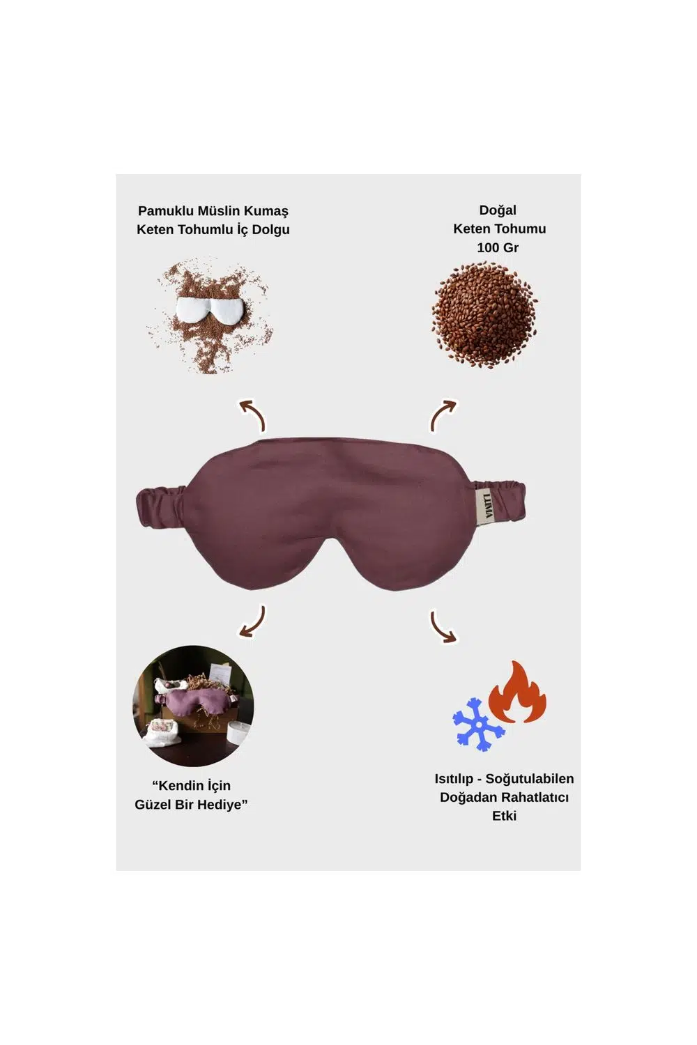 Keten tohumlu göz maskesi; sıcak kullanımda göz çevresindeki kasları gevşetir, soğuk kullanımda şişlik ve ödemi hafifletir.