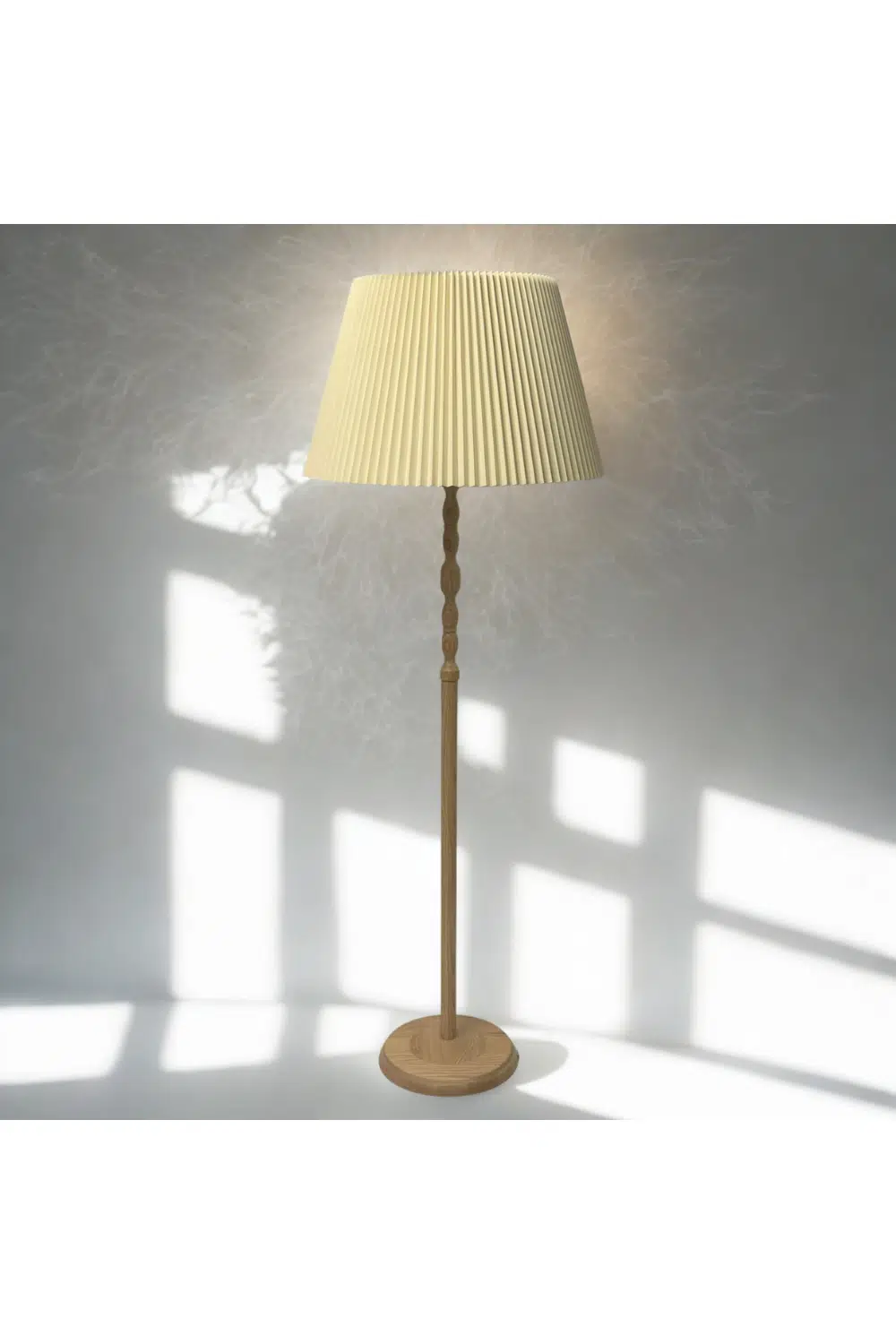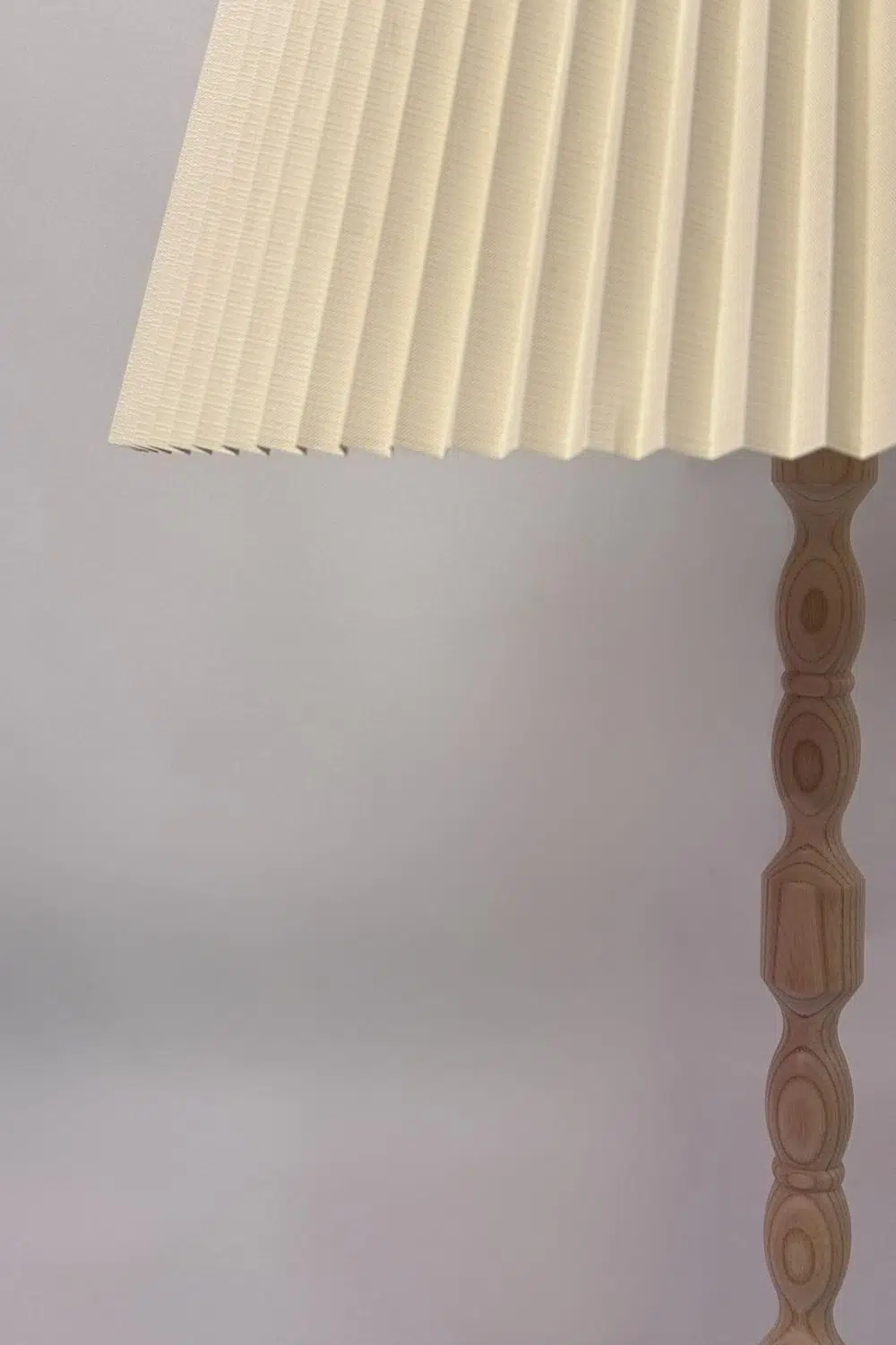 El işçiliğini andıran gövde oymaları, doğal meşe tonundaki yüzeyi ve kırık beyaz tekstil başlığıyla mekânlarda sakin ama karakterli bir atmosfer yaratır.